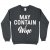 May Contain Wine Sweatshirt is made from a 50% U.S. Cotton/50% Polyester blend, this warm 8.0 oz sq/yd classic fit style looks great and makes a great canvas for decorating. Funny Wine Crewneck Sweatshirt is designed and printed in California.